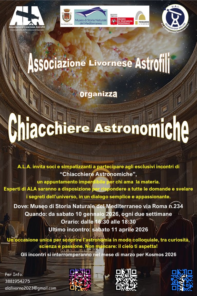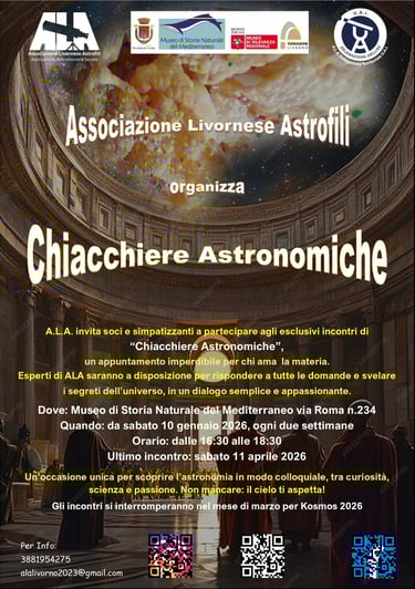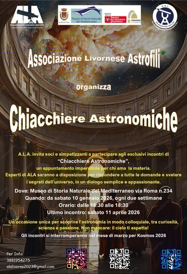 “Questo sito ha lo scopo di fornire informazioni generali sulle attività dell'Associazione Livornese Astrofili. Per approfondire lo studio dell'astronomia — dalle basi teoriche all'osservazione pratica — l'associazione organizza corsi dedicati e incontri formativi presso la struttura del Museo di Storia Naturale del Mediterraneo di Livorno".