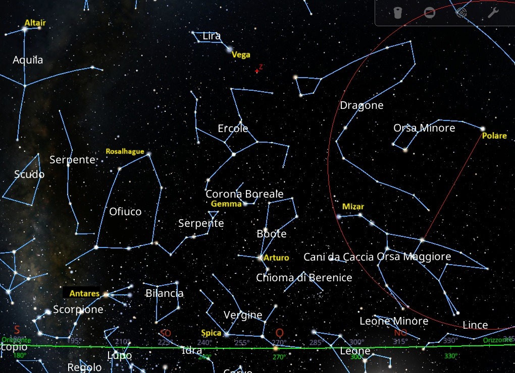 Suggerimento: cerca Arturo a Ovest, poi segui la curva verso Spica e la zona della Vergine.