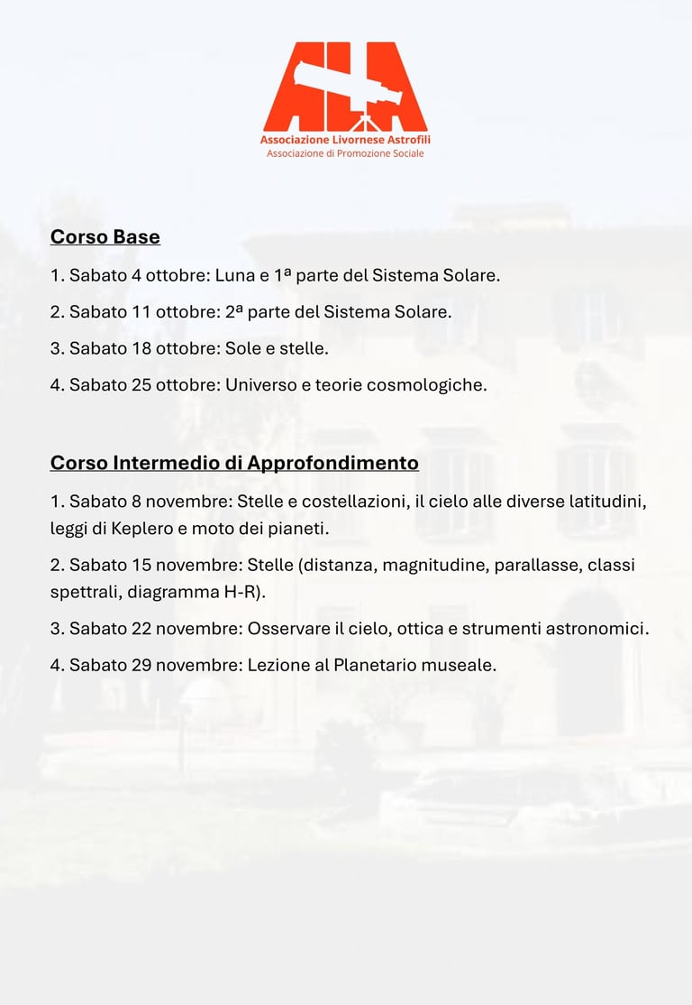 A.L.A. ha la gestione del Planetario nella seconda e la quarta domenica di ogni mese.